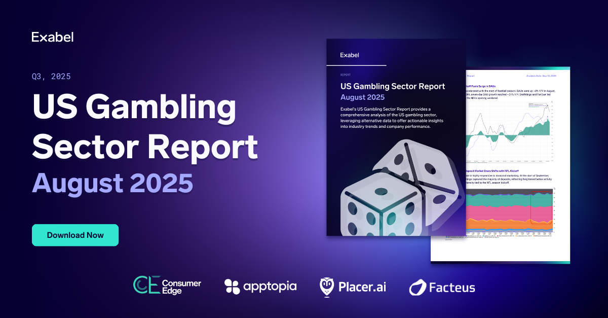 Exabel’s latest Sector Report is now available with a focus on the US Gambling sector — offering data-backed insight into key trends and performance signals across 13 sports betting and online gambling operators. Download your copy now.